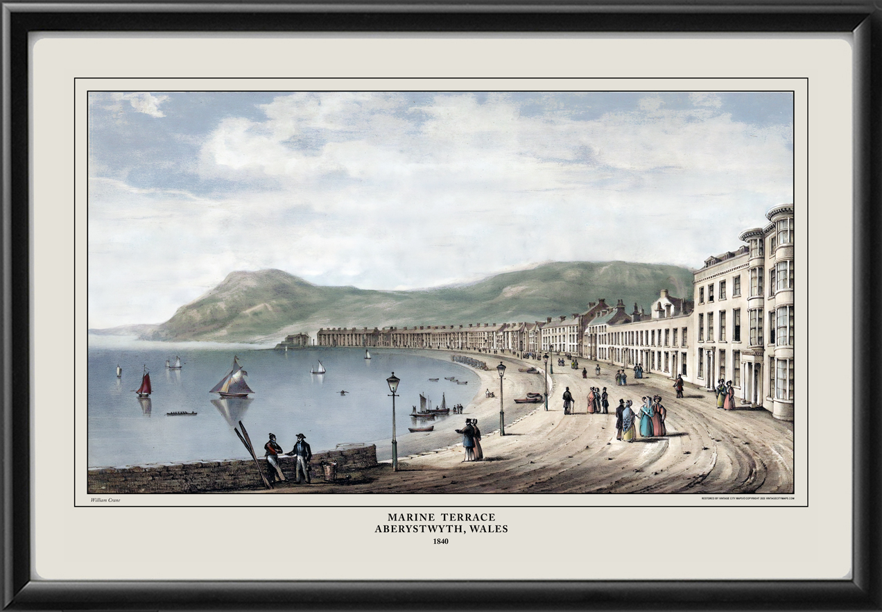 Restored bird’s eye view of Marine Terrace, Aberystwyth, Wales, 1840 by William Crane