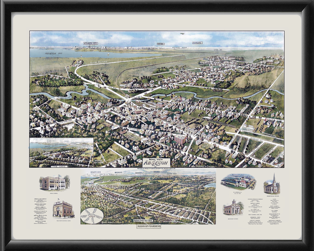 Restored bird’s eye view map of Absecon, New Jersey, 1924 by Rene Cinquin.