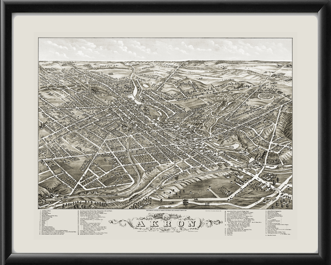 Restored bird’s eye view map of Akron, Ohio, 1882 by Albert Ruger