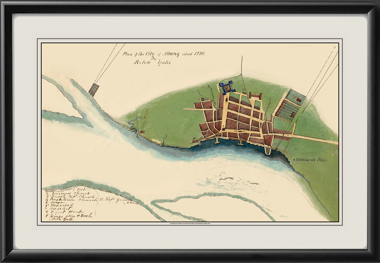 Restored plan of the city of Albany, New York, circa 1770 by draftsman Robert Yates