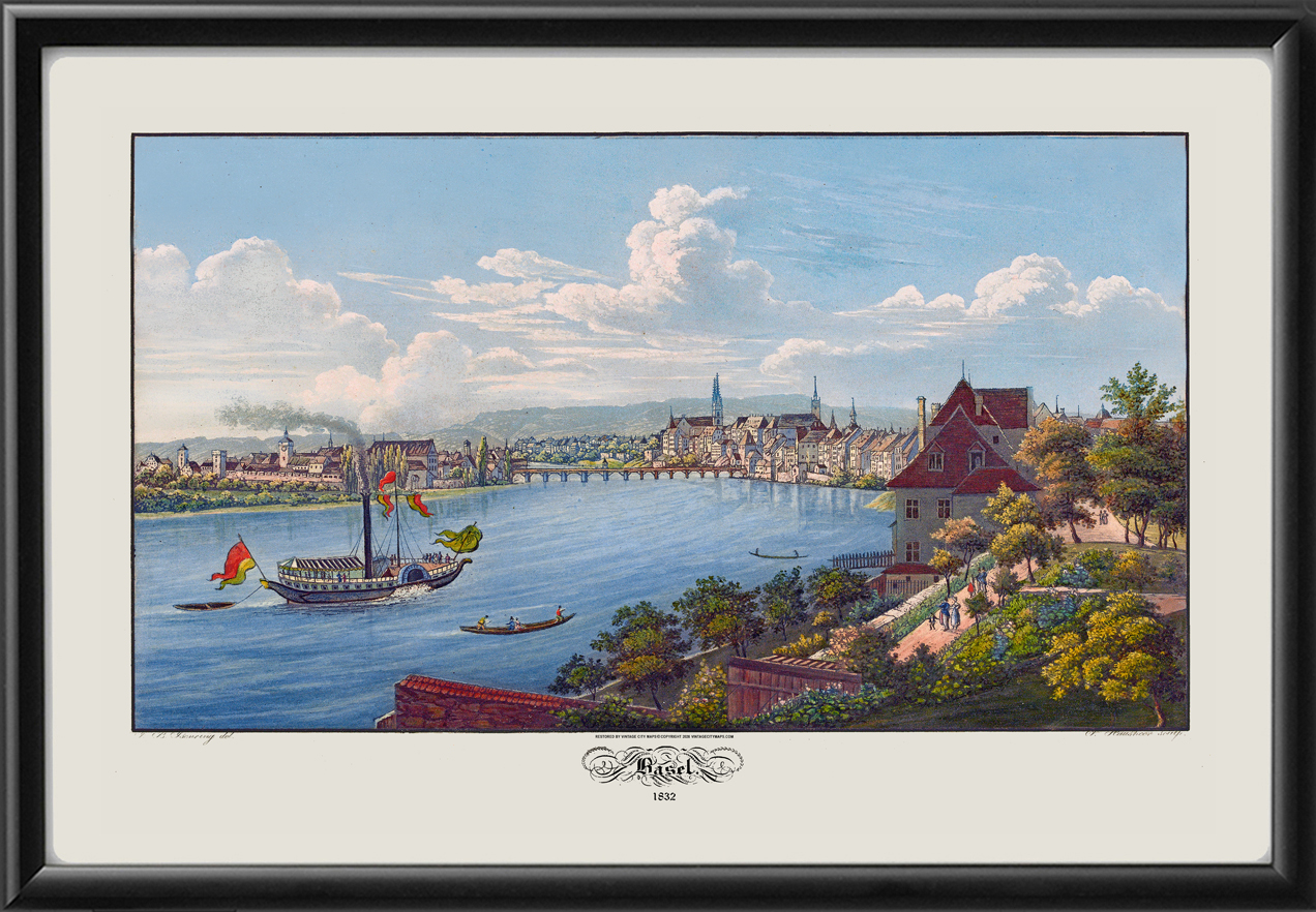 Restored bird’s eye view of Basel, Switzerland 1832 by Johann Baptist Isenring