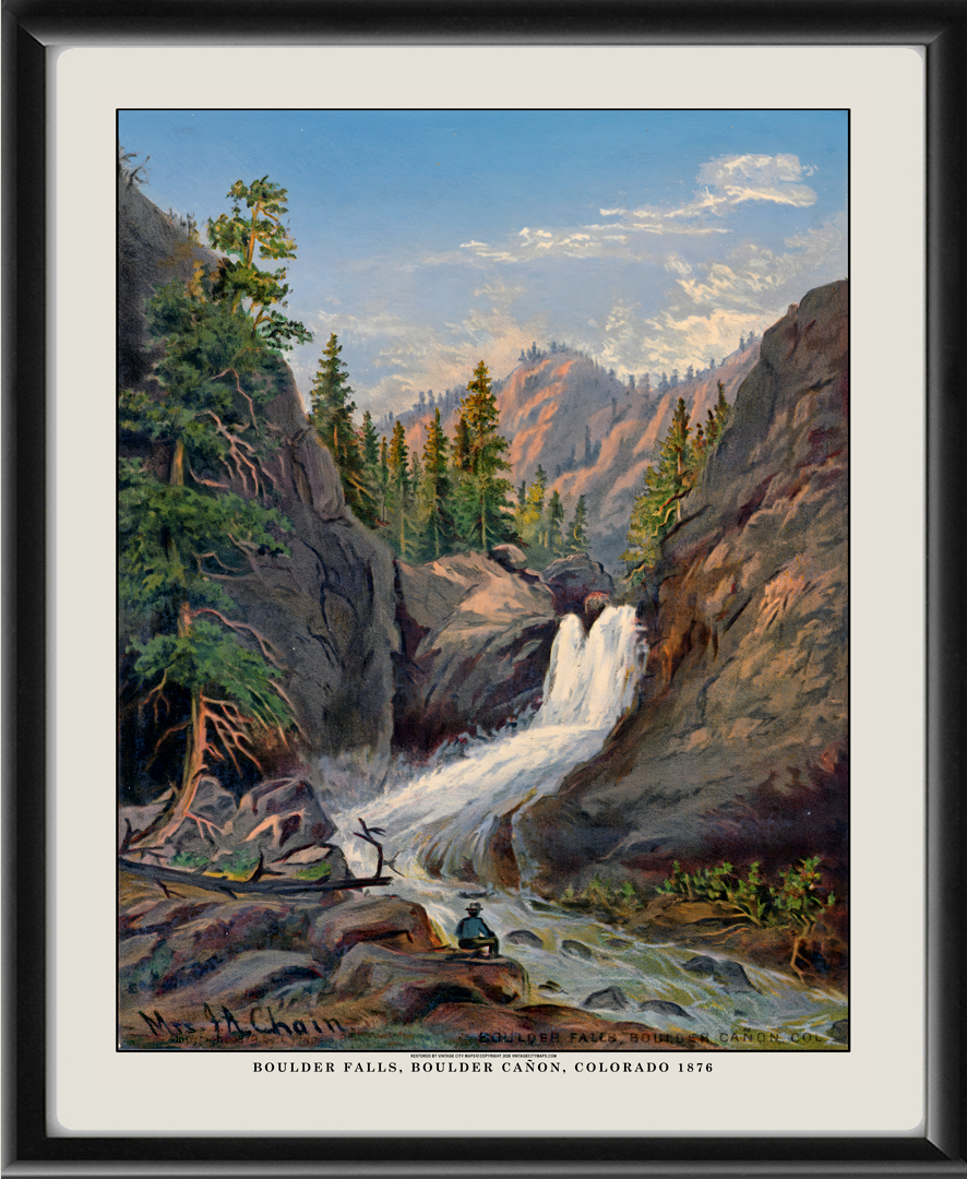 Restored view of Boulder Falls, Boulder Canon, Colorado, circa 1876 from the original painting by Helen Henderson Chain