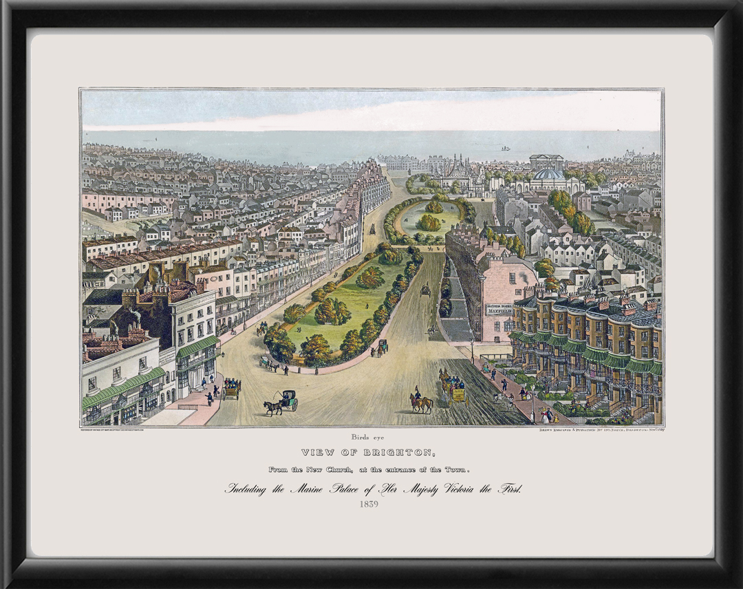 Restored bird’s eye view of Brighton, England 1839 by John Bruce.