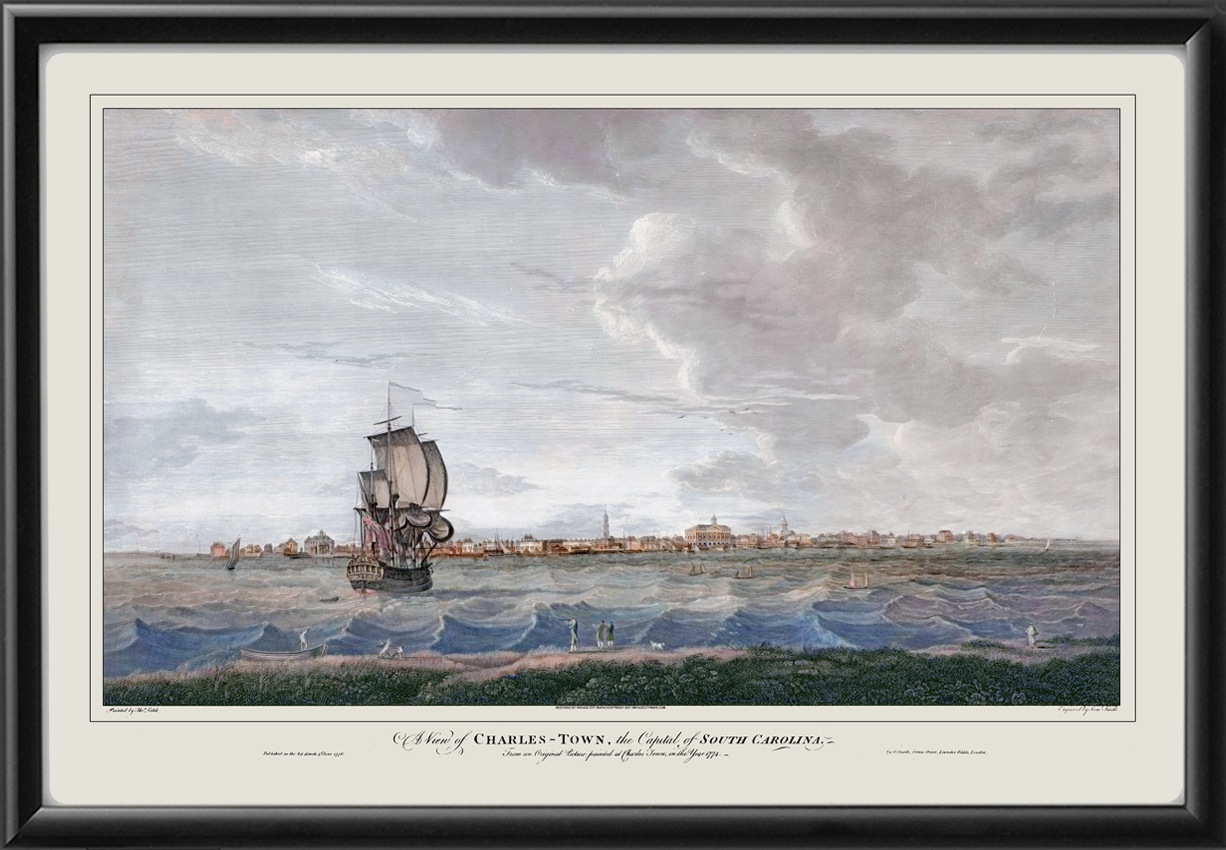 Panoramic view of Charleston, South Carolina, 1774 from the original painting by Thomas Leitch, and engraved by Samuel Smith.