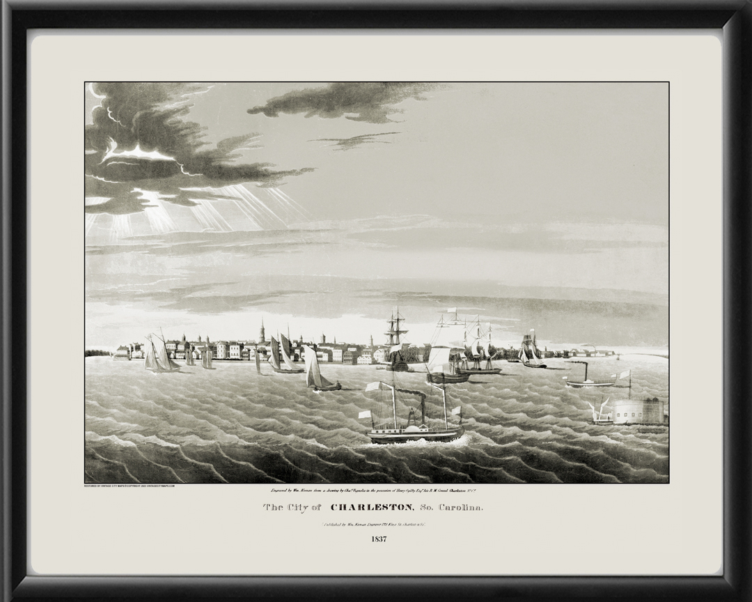 Restored panoramic view of Charleston, South Carolina, from Charleston Harbor, 1837 by Charles Vignoles.