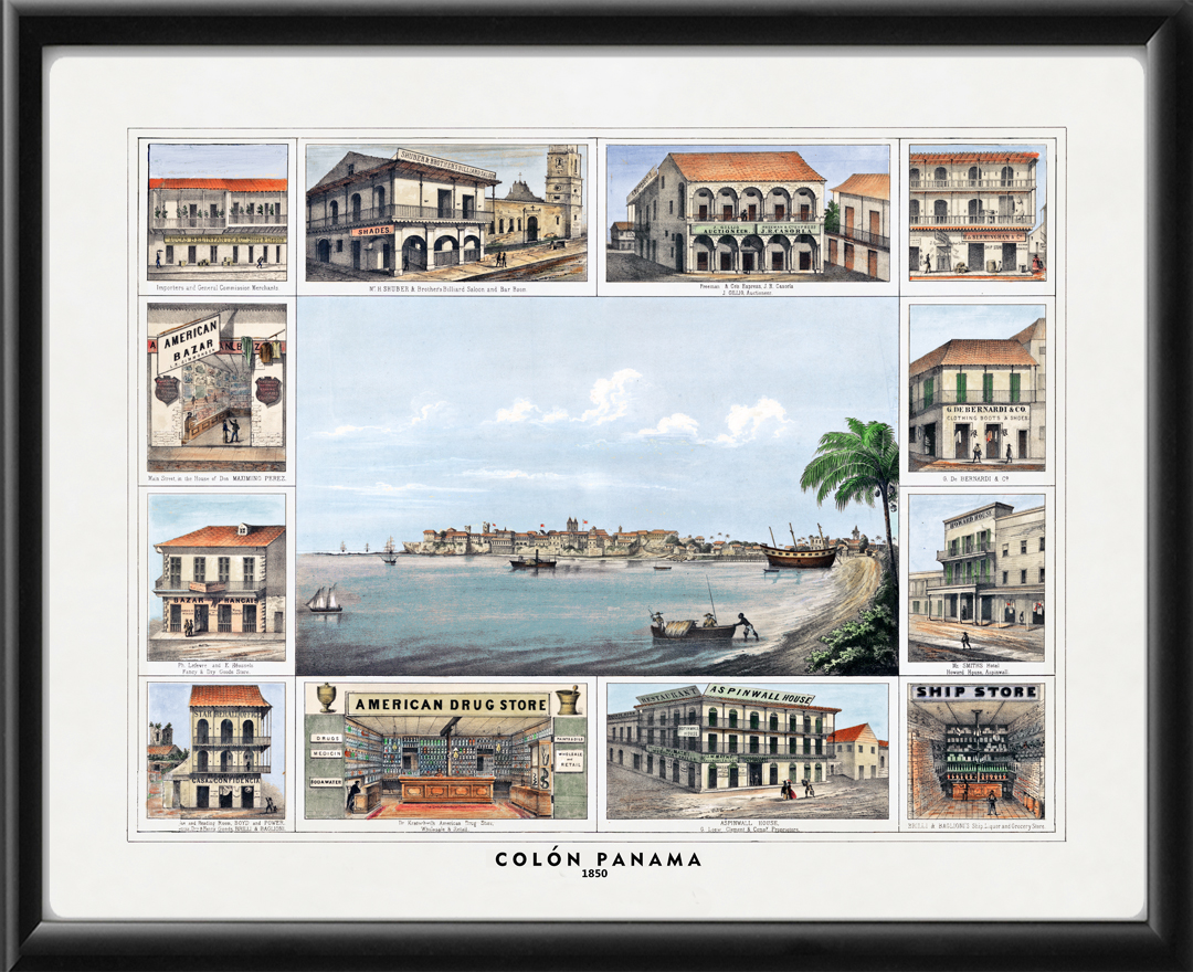 Restored panoramic view of Colon, Panama 1850 by Wm E. Sibell, publisher.