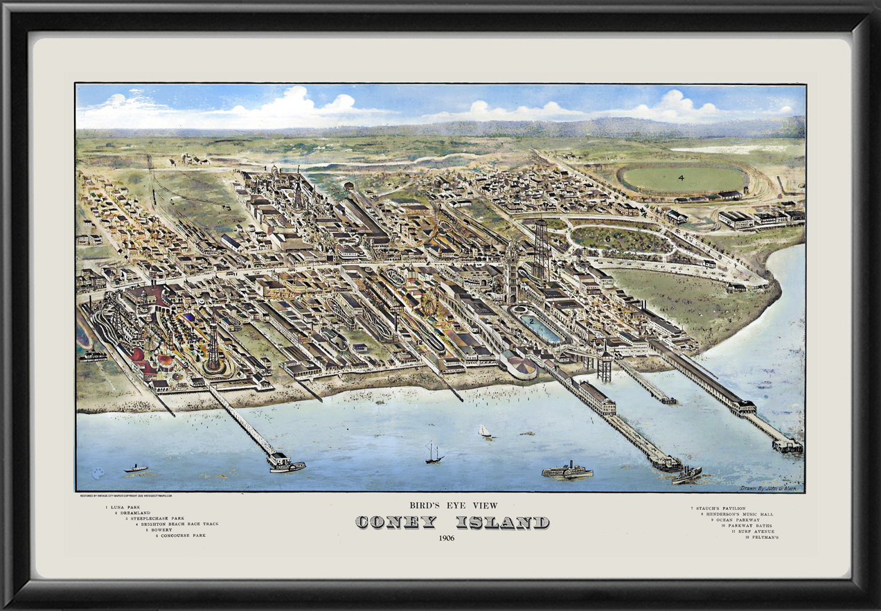 Restored bird’s eye view map of Coney Island, New York, 1906 by John Mark.