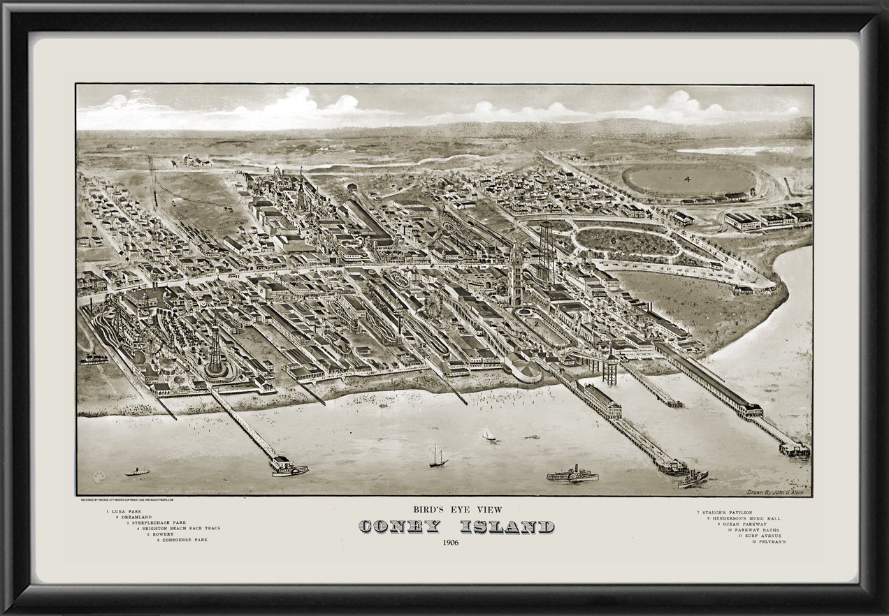 Restored bird’s eye view map of Coney Island, New York, 1906 by John Mark.