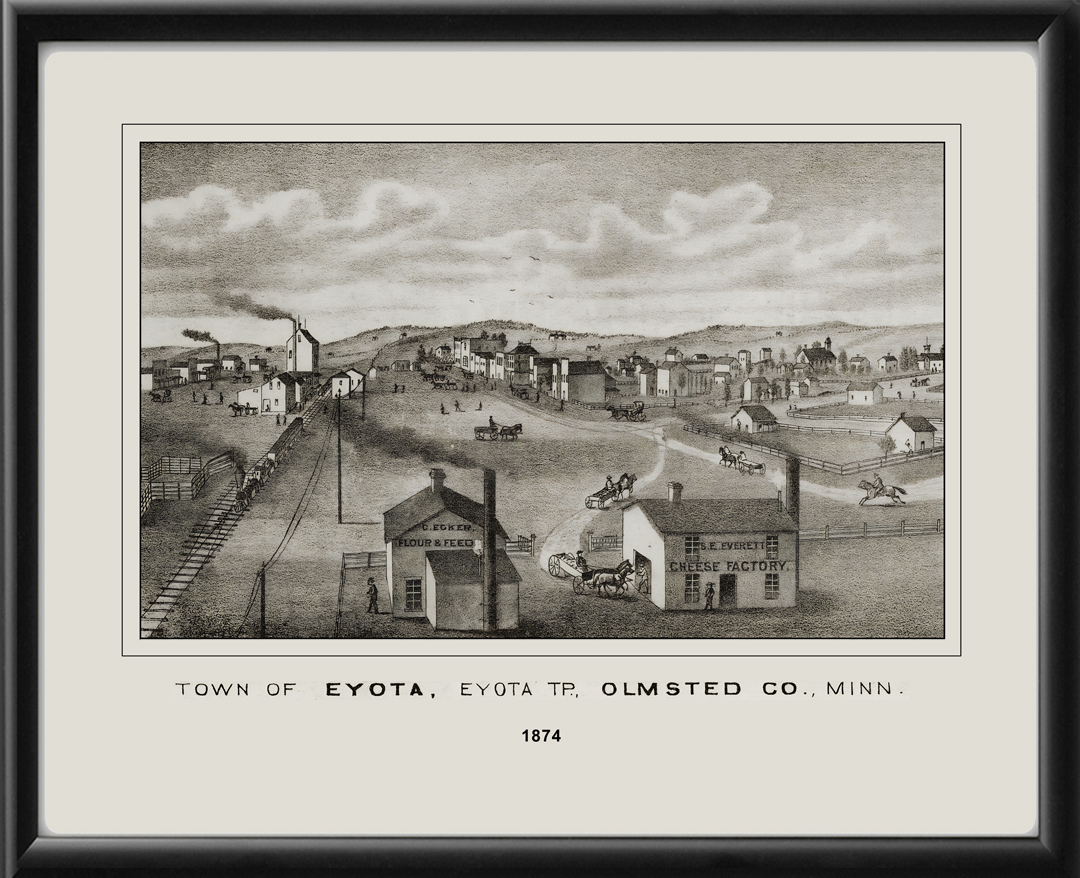 Restored bird’s eye view of Eyota, Minnesota, 1874 from the original engraving by Alfred T. Andreas