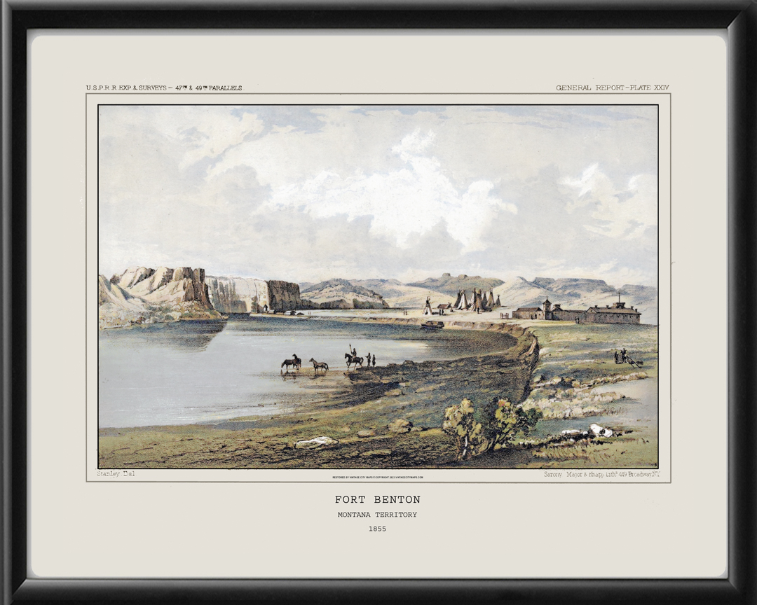 Restored panoramic view of Fort Benton on the Missouri River, Chouteau County, Montana, 1855 by John Mix Stanley