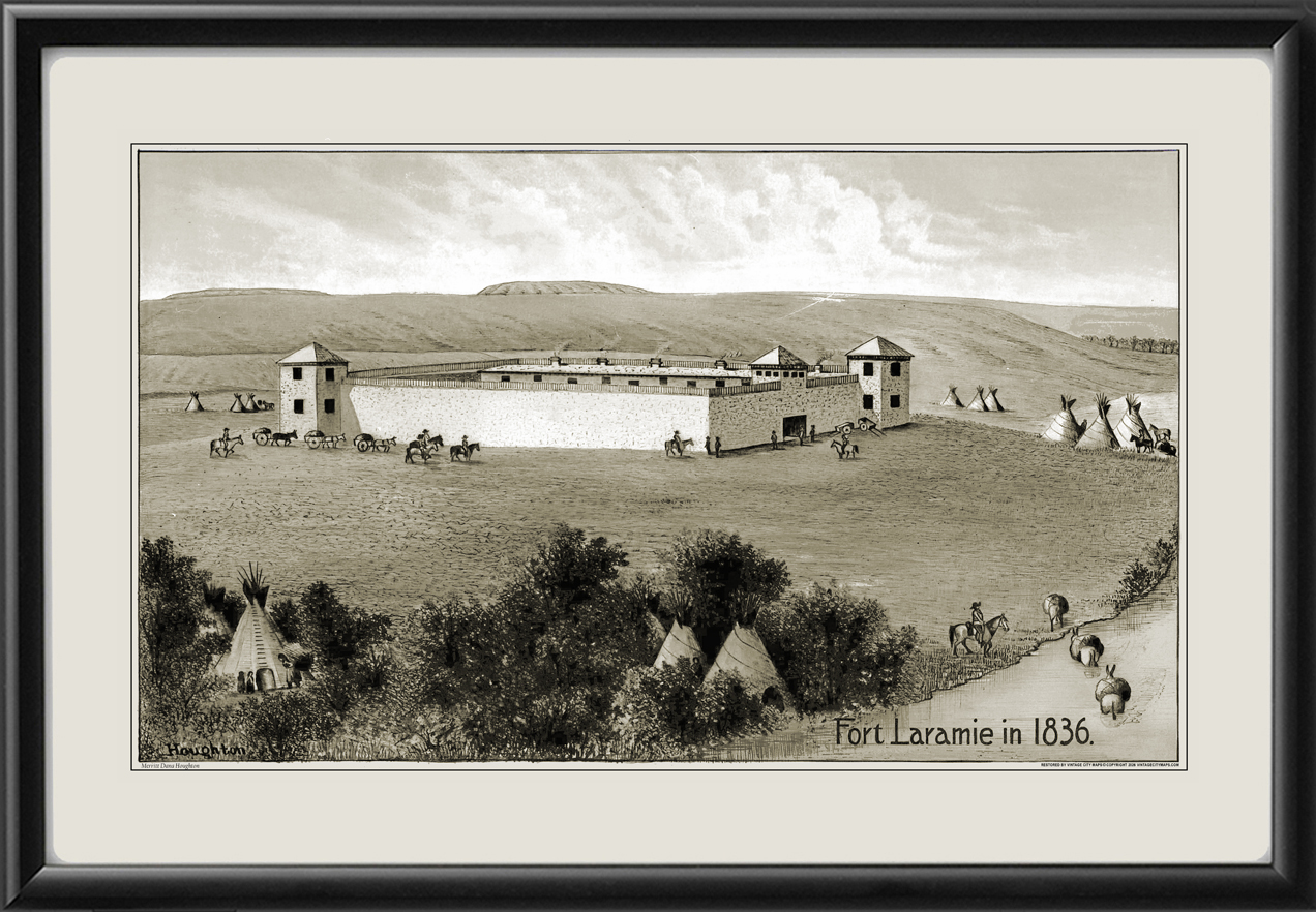 Restored bird’s eye view of Fort Laramie, Wyoming, 1836 by Merritt Dana Houghton