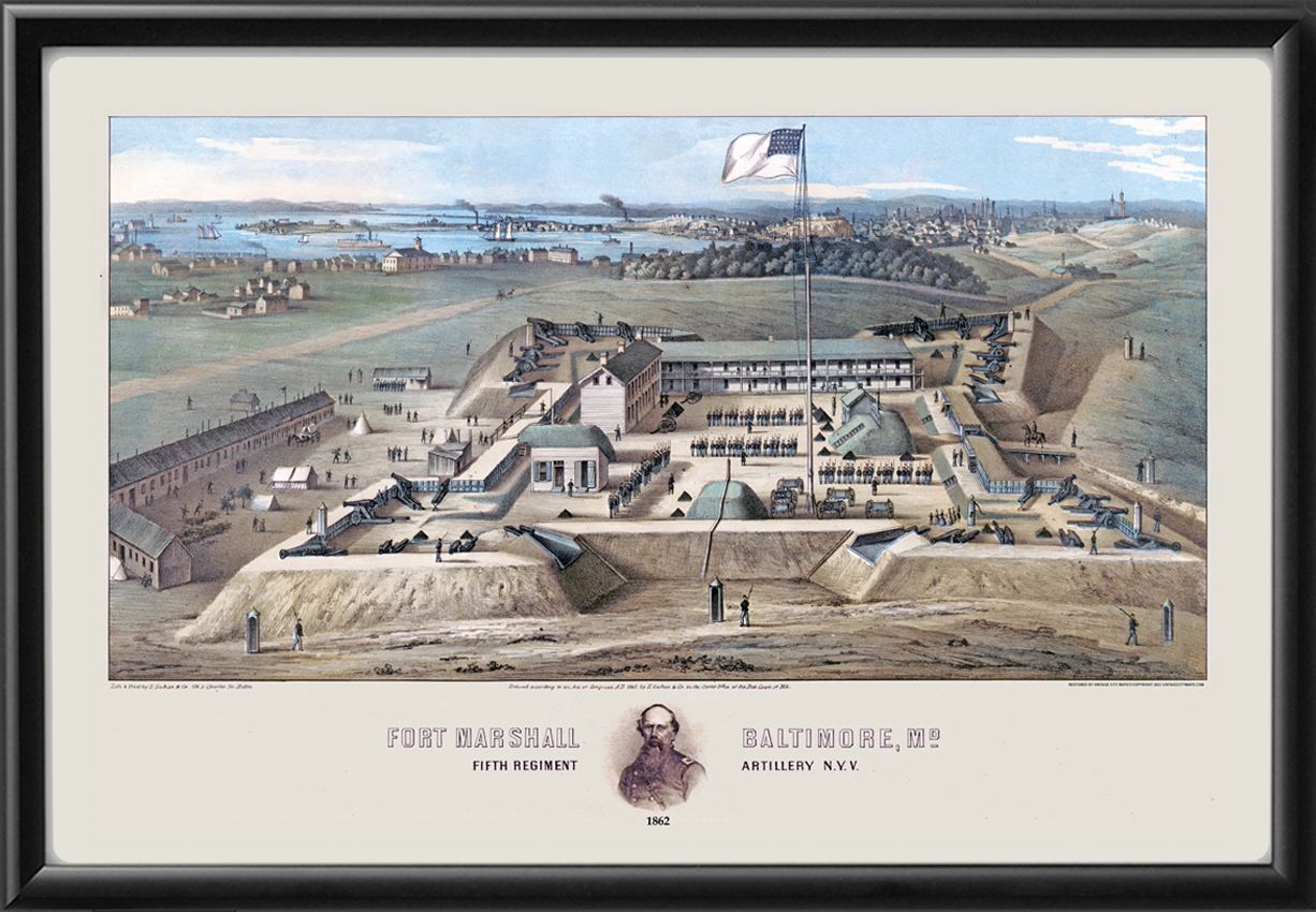 Restored bird’s eye view of Fort Marshall, Baltimore, Maryland, Fifth Regiment Artillery New York Volunteers, 1862 by Edward Sachse.