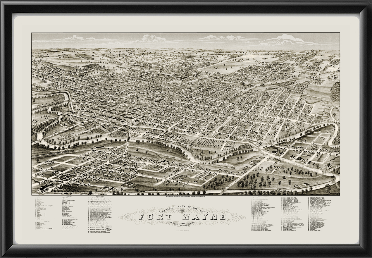 Restored bird’s eye view map of Fort Wayne, Indiana, 1880 by Beck & Pauli.