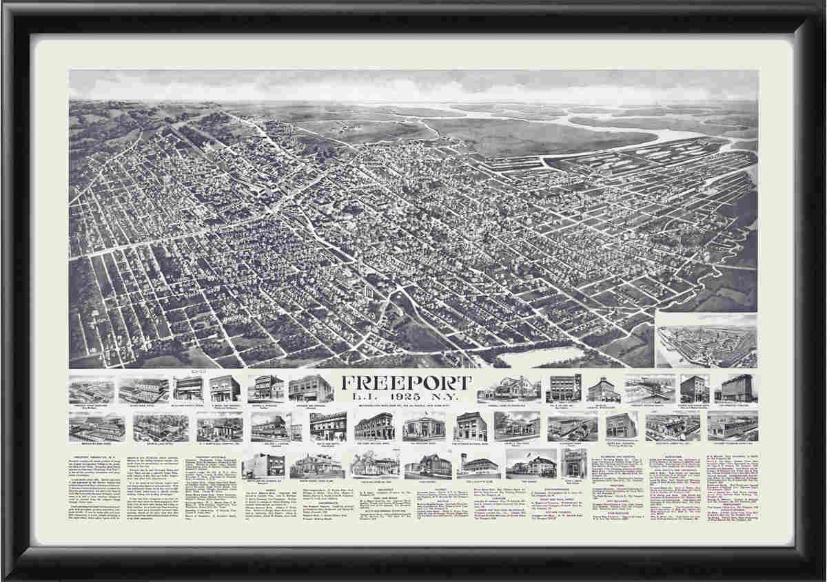 Bird’s eye view map of Freeport L.I. NY 1925 by Rene Cinquin