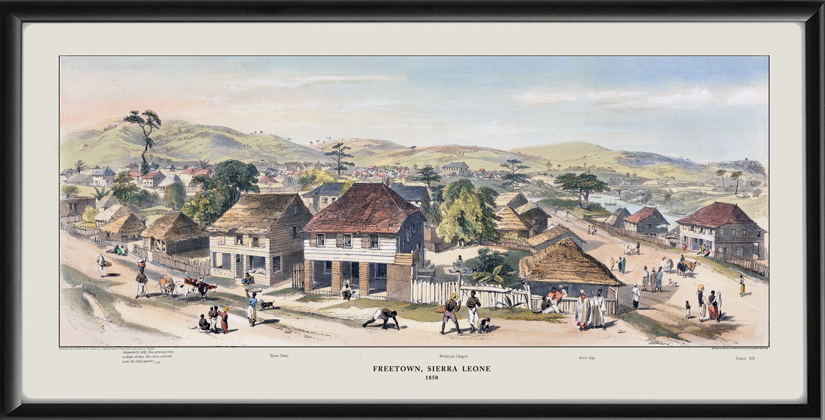 Restored panoramic view of Freetown, Sierra Leone, 1850 by Auguste François Laby and Jonathan Needham, after sketches by M. Terry.