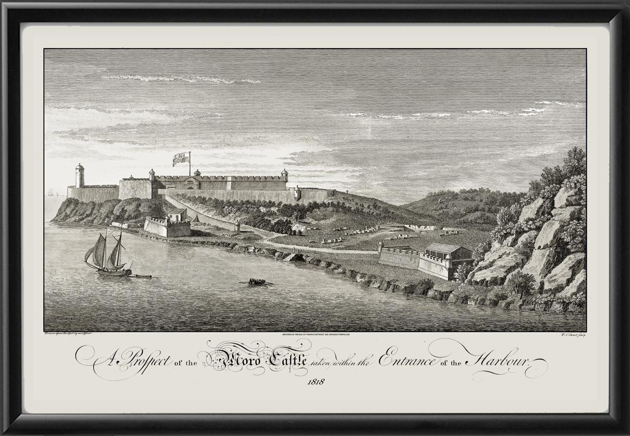 Restored bird’s eye view of Moro Castle taken at the entrance of Havana Harbor, 1818 by Pierre C. Canot