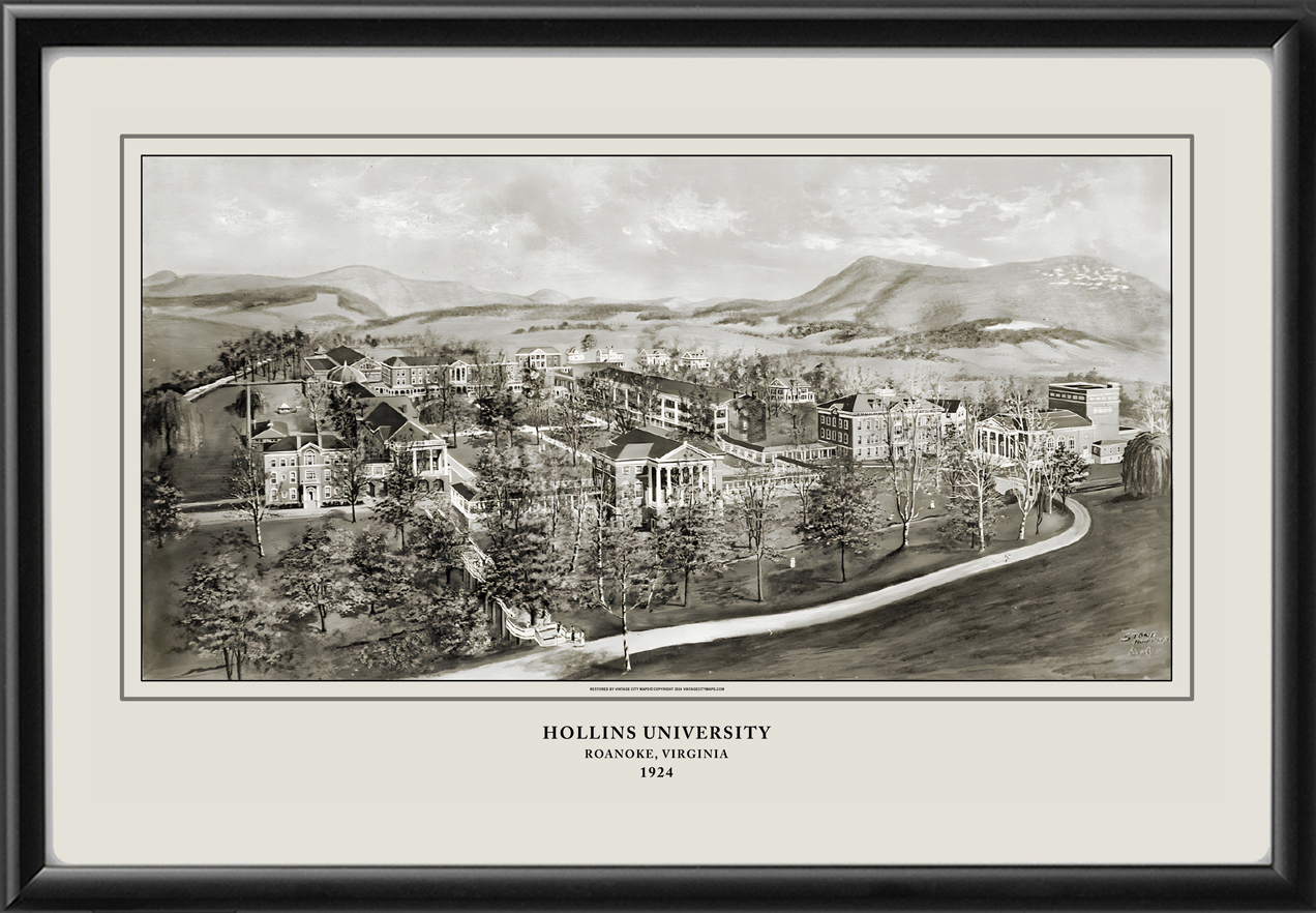 Restored bird’s eye view of Hollins University, Roanoke, Virginia, 1924