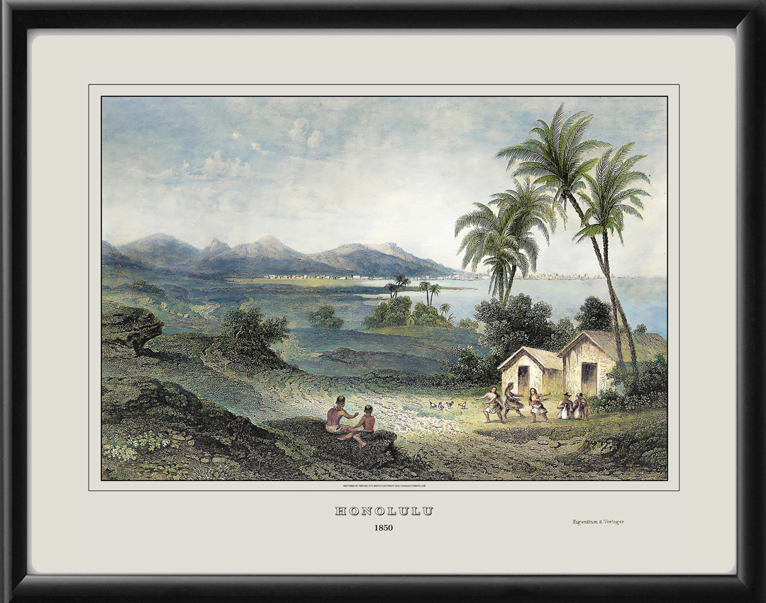 Restored bird’s eye view of Honolulu, Hawaii (Sandwich Islands), circa 1850 by Eigenthum der Verleger