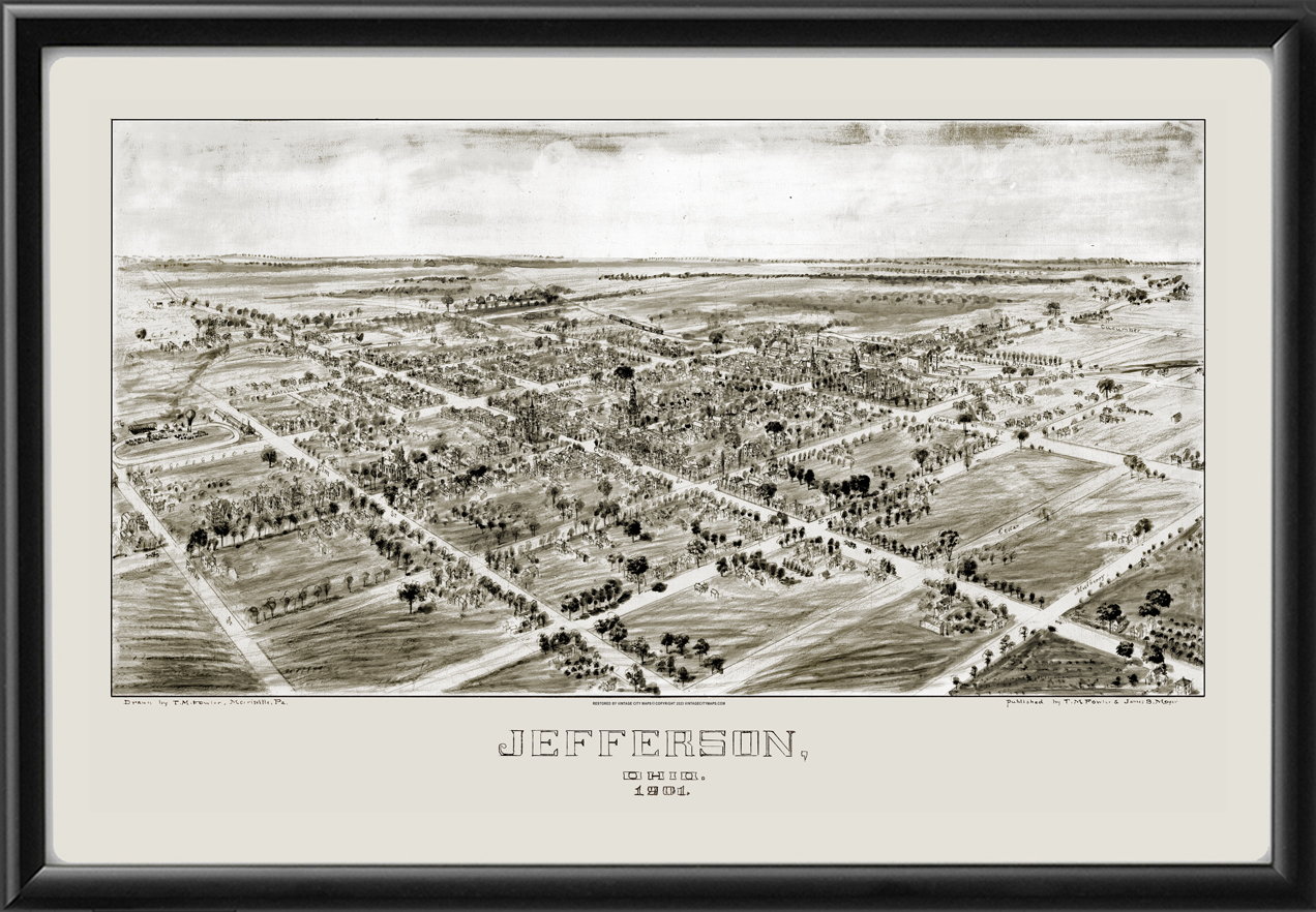 Restored bird’s eye view map of Jefferson, Ohio, 1901 by Thaddeus Mortimer Fowler.