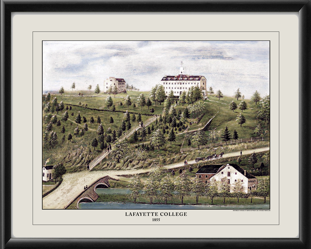 Restored bird’s eye view of Lafayette College in Easton, Pennsylvania, 1855