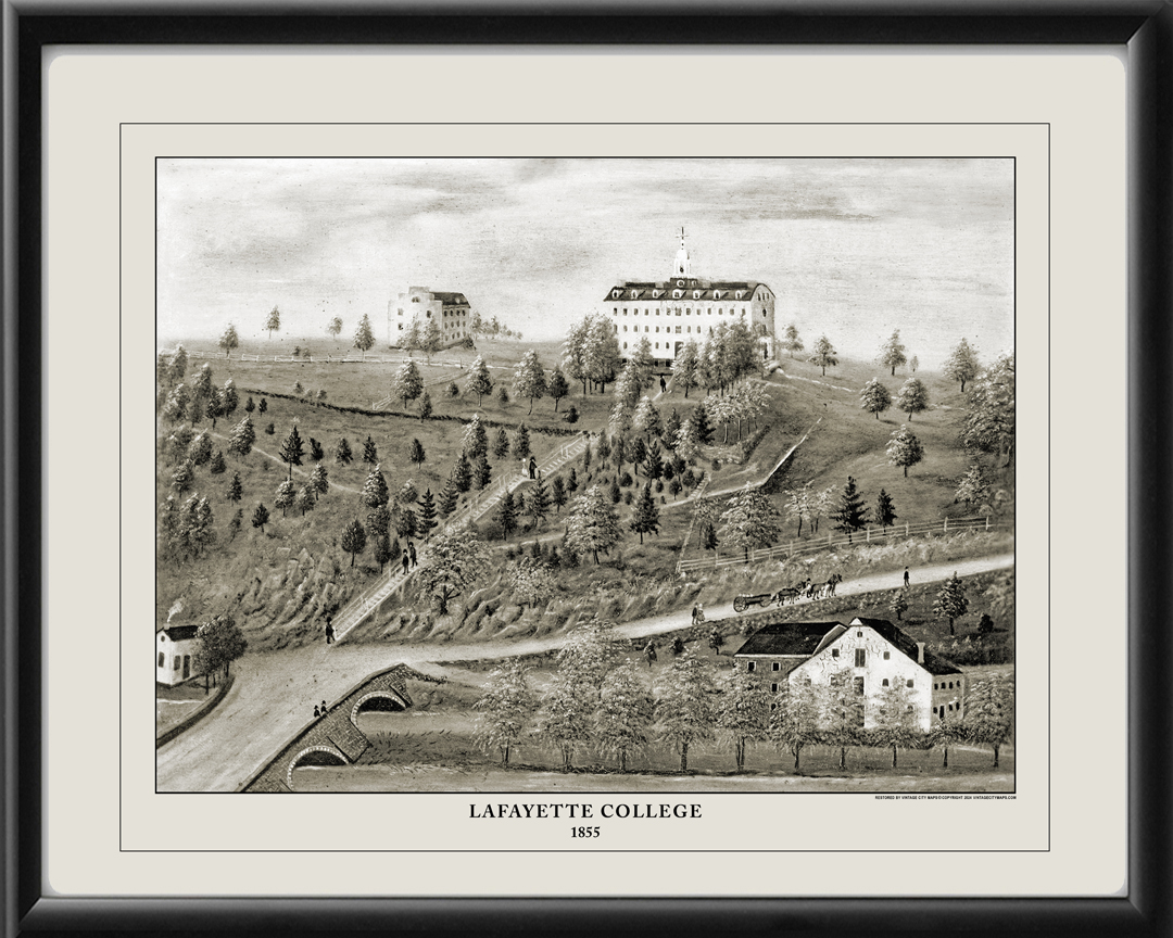 Restored bird’s eye view of Lafayette College in Easton, Pennsylvania, 1855