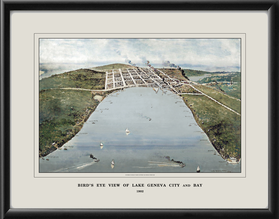 Restored bird’s eye view of Lake Geneva City and Bay, Wisconsin, 1902.