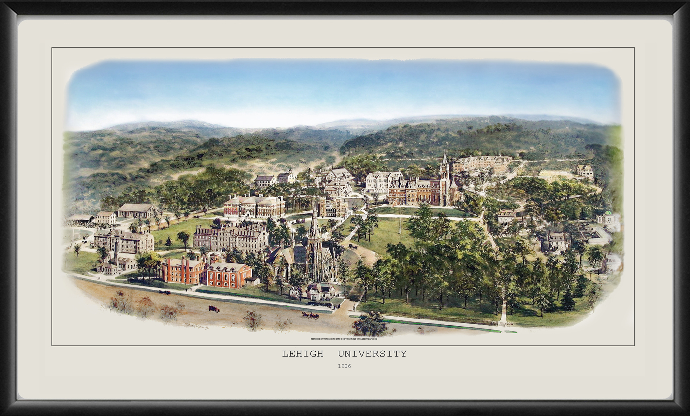 Restored bird’s eye view of Lehigh University, Bethlehem, Pennsylvania, 1906 by Richard Rummell.