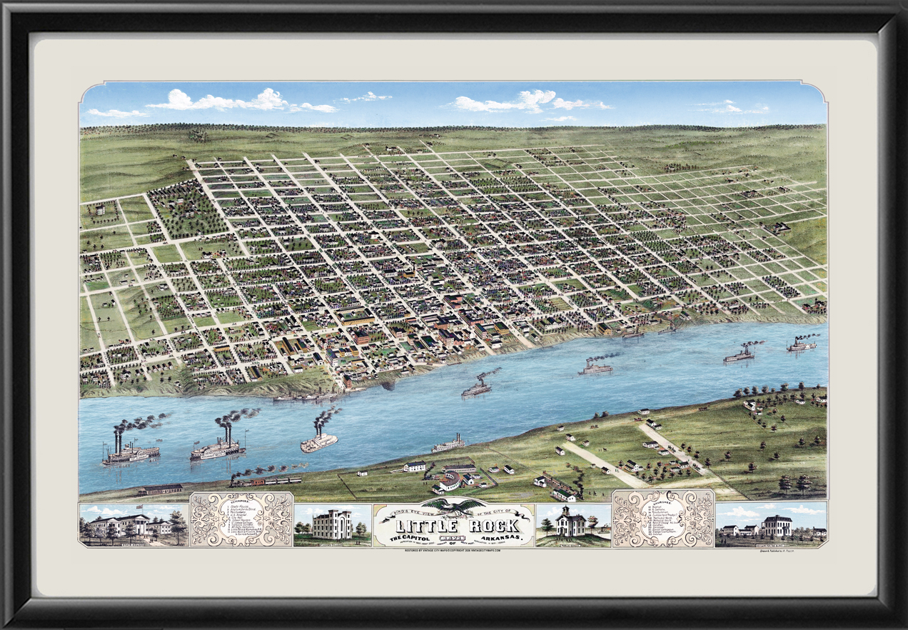 Restored bird’s eye view map of Little Rock, Arkansas, 1871 by Albert Ruger.