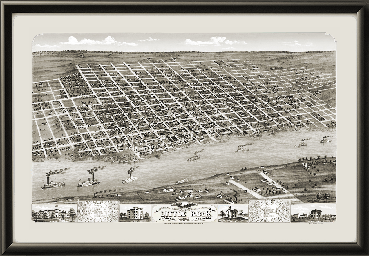 Restored bird’s eye view map of Little Rock, Arkansas, 1871 by Albert Ruger.