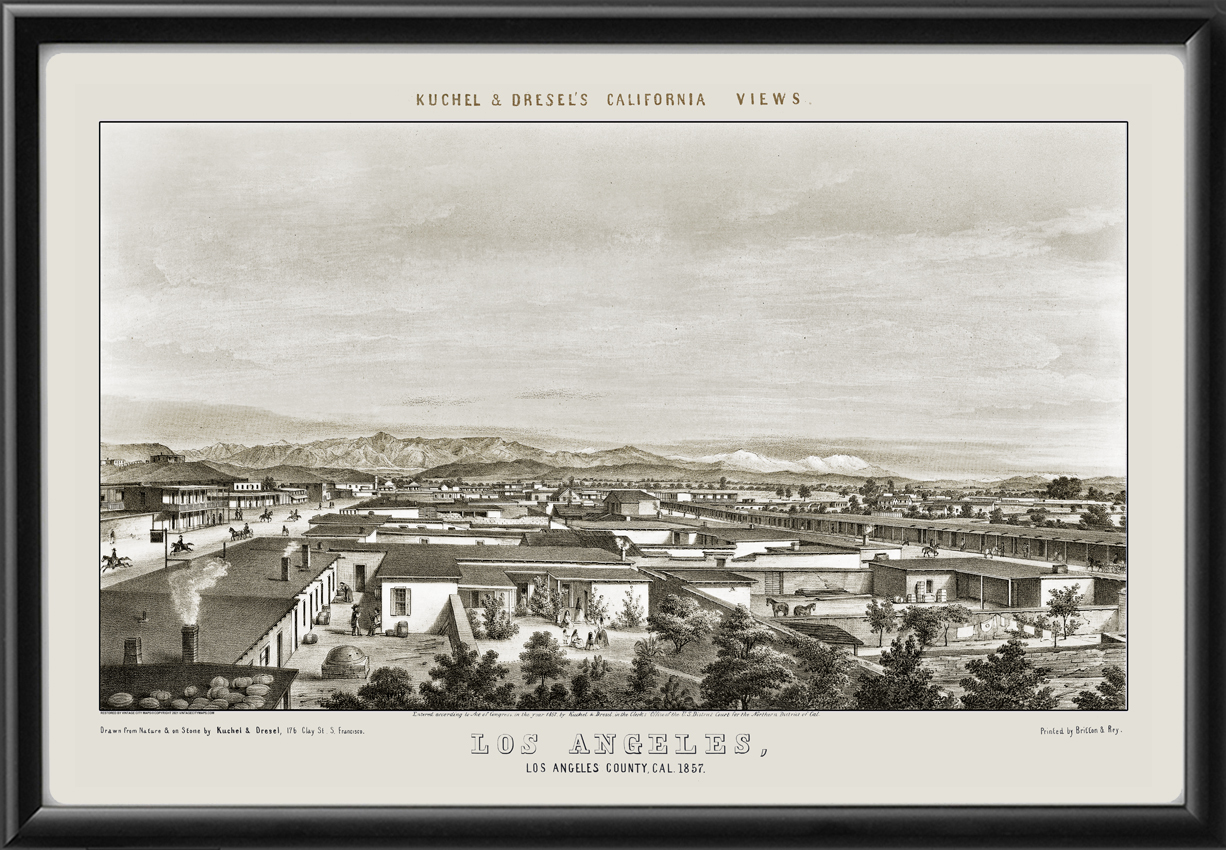 Restored panoramic view of Los Angeles, California, 1857 by Kuchel and Dresel.