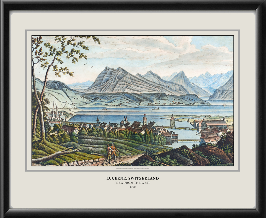 Restored panoramic view of Lucerne, Switzerland, 1750 viewed from the West by Johann Ulrich Schellenberg