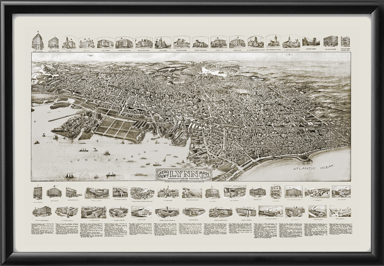 Restored bird’s eye view of Lynn, Massachusetts, 1916 by Fowler & Downs.