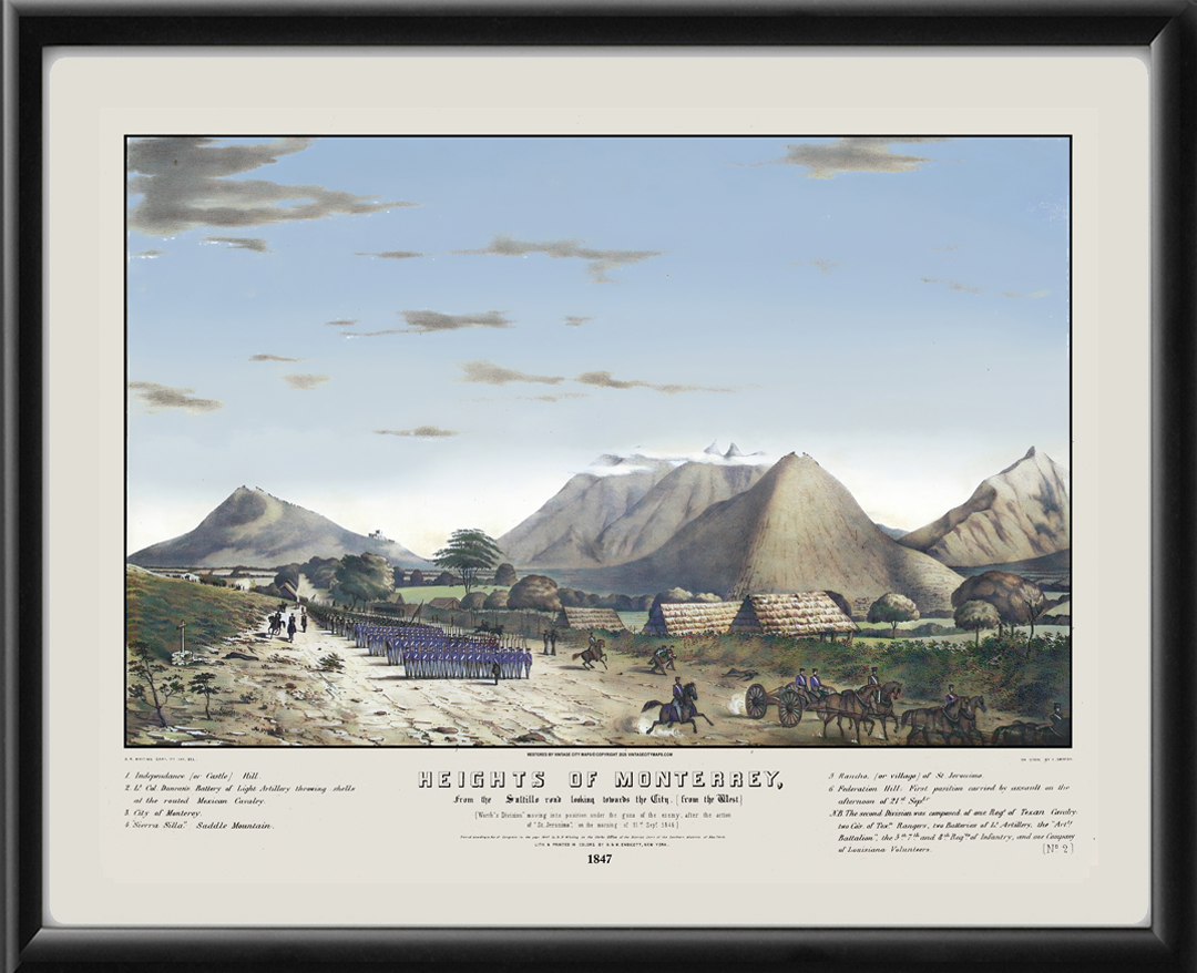 Panoramic view of the Heights of Monterey, from the Saltillo Road looking towards the City from the West during the war with Mexico, 1847 by Capt. Daniel Powers Whiting
