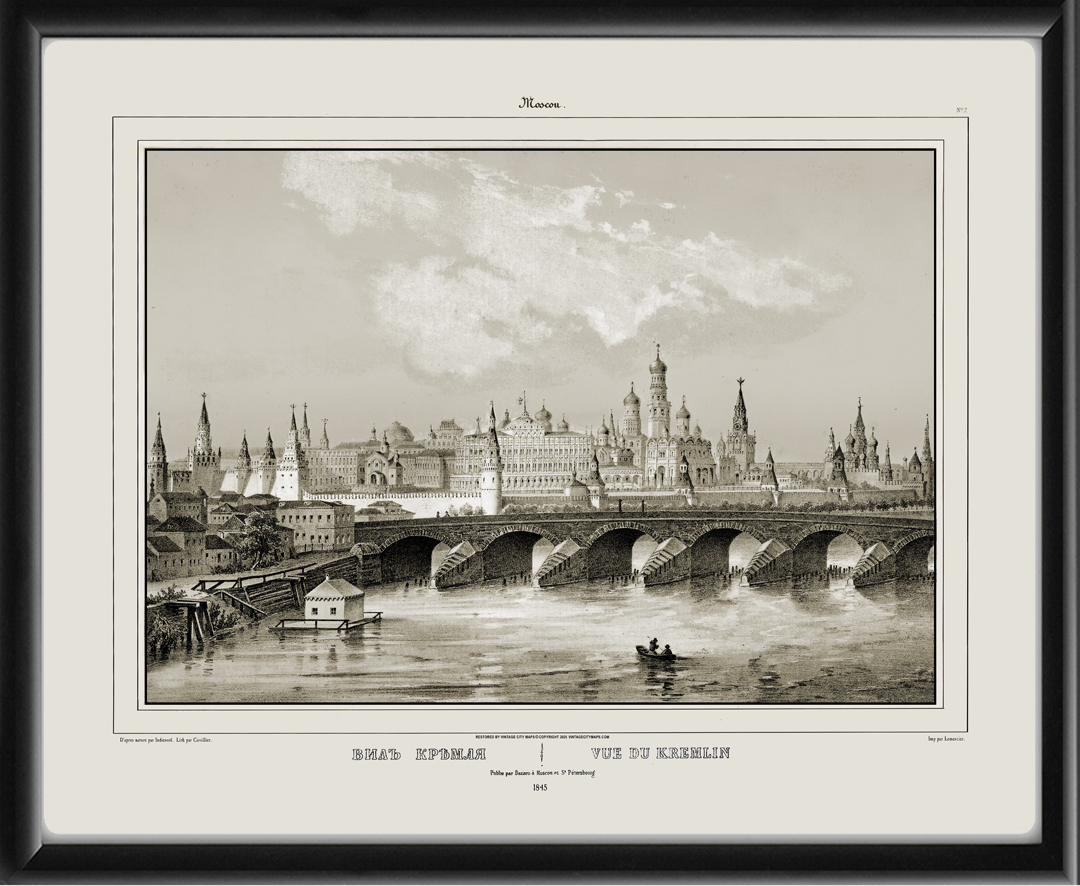 Restored view of the Kremlin in Moscow, Russia, 1845 by Alfred-Leon Lemercier.