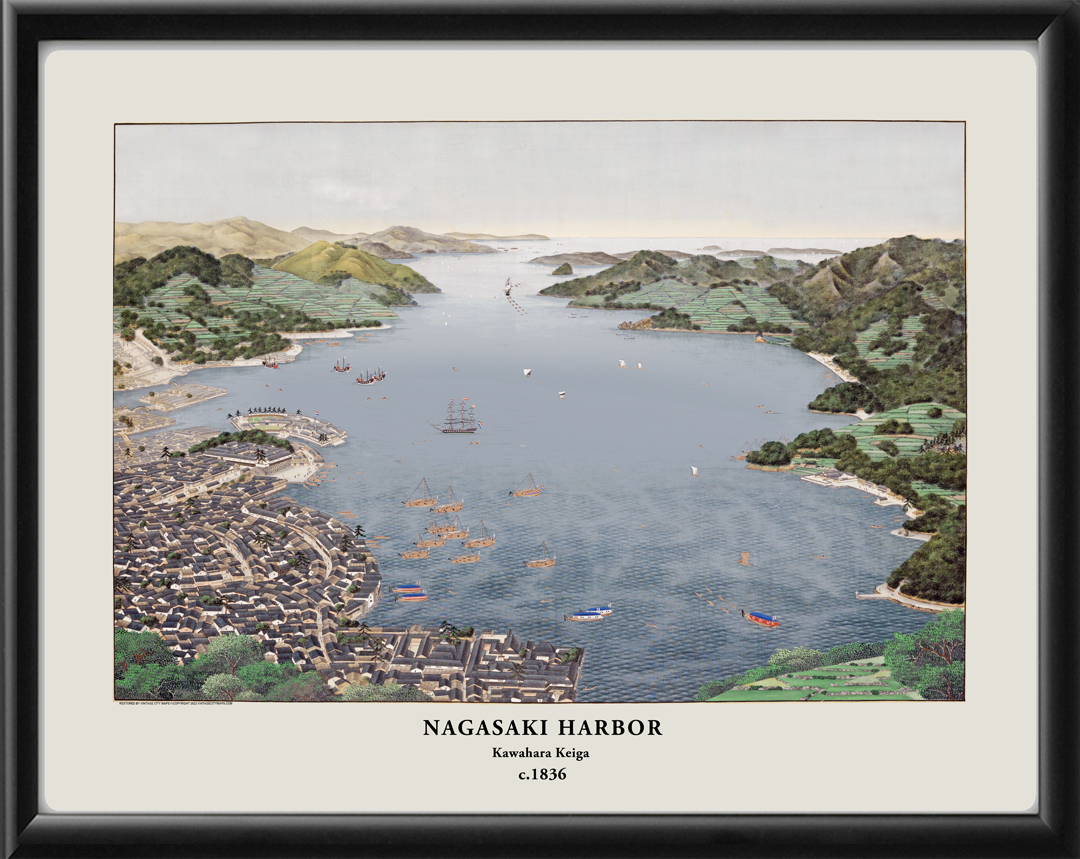 Restored panoramic view of Nagasaki Harbor, Japan, circa 1836 by Kawahara Keiga from the original painting on silk.