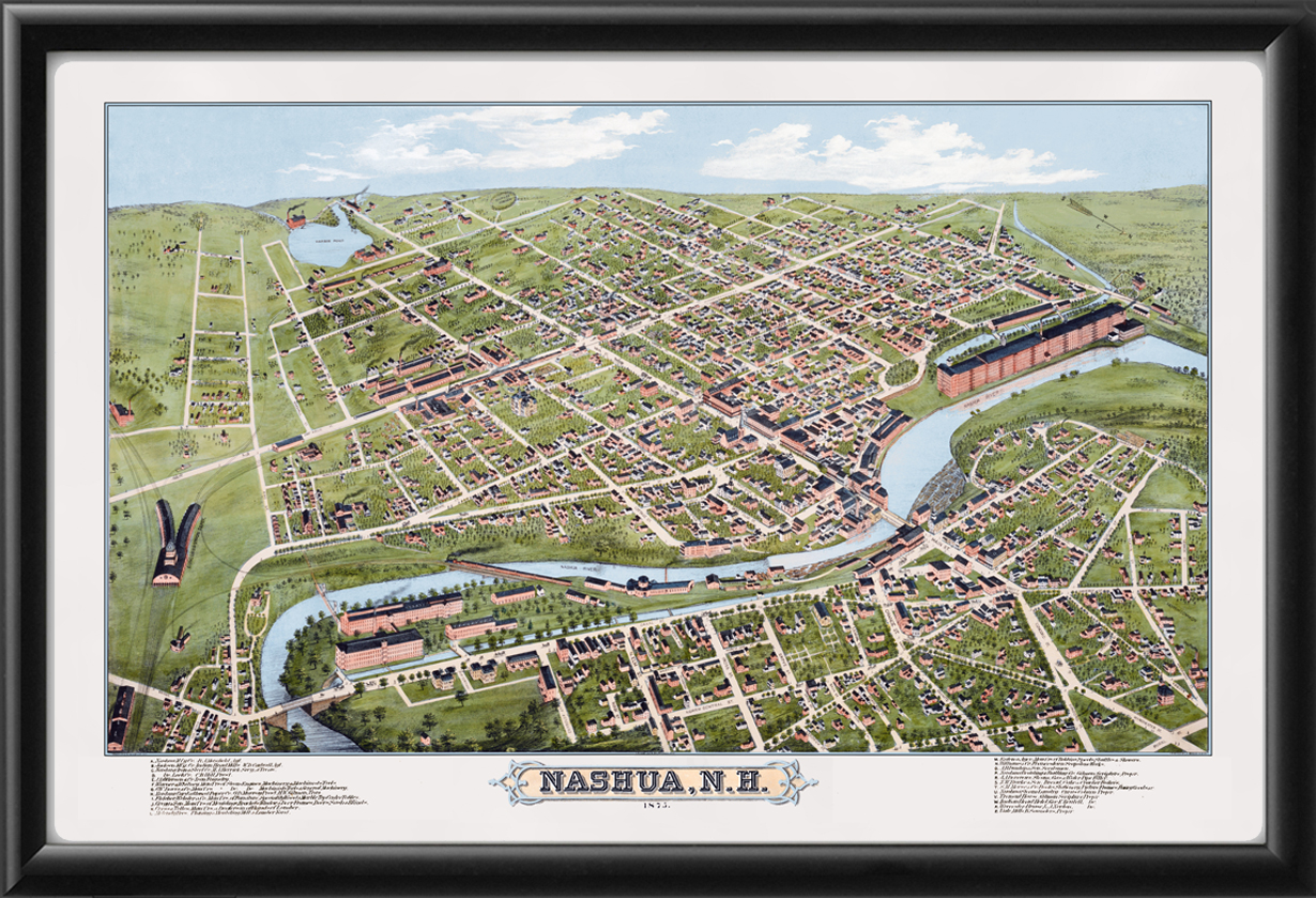 Birds eye view of Nashua, New Hampshire 1875 by Bailey & Hazen