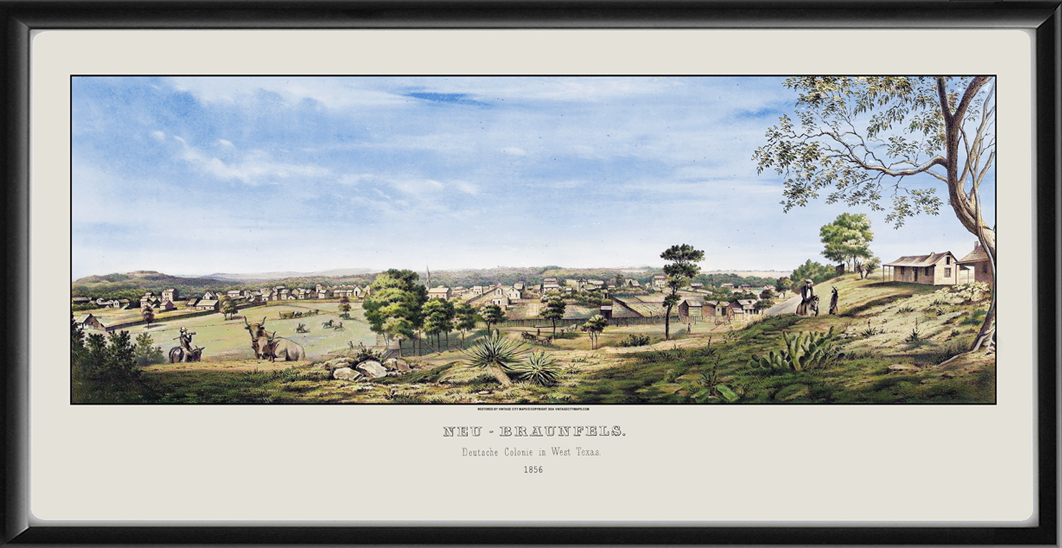 Restored panoramic view of New Braunfels, Texas, by 1856 Carl G. Iwonski
