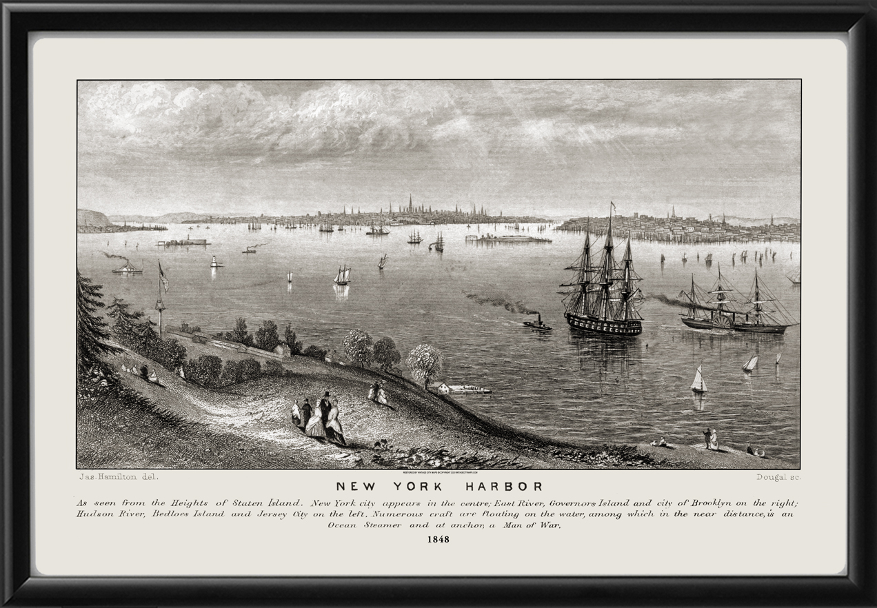 Restored panoramic view of New York Harbor, New York City 1848 by Joseph Hamilton.
