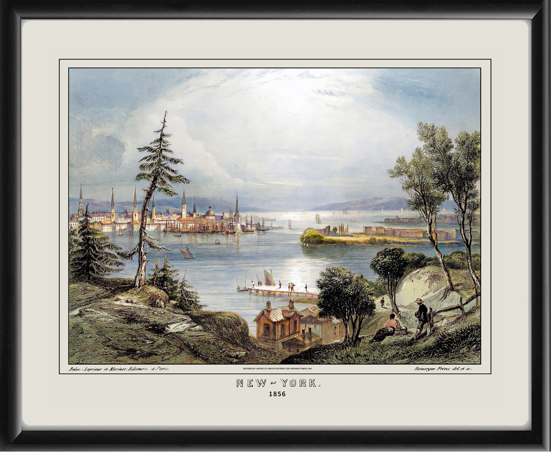 Restored bird’s eye view of New York City, 1856 from the original engraving by Conrad Malte-Brun