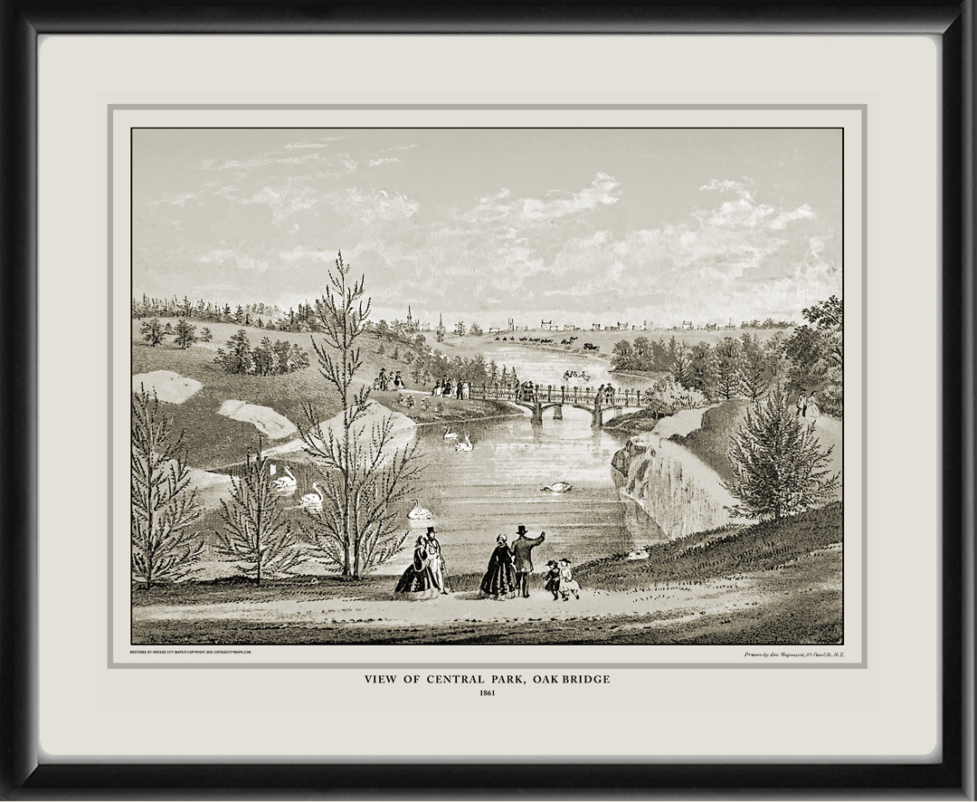 Restored bird’s eye view of New York City, NY 1861 – Central Park and Oak Bridge by George Hayward