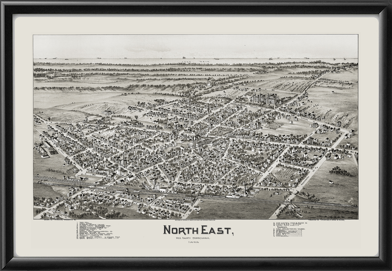 Restored bird’s eye view of North East, Pennsylvania, 1896 by Thaddeus Mortimer Fowler.
