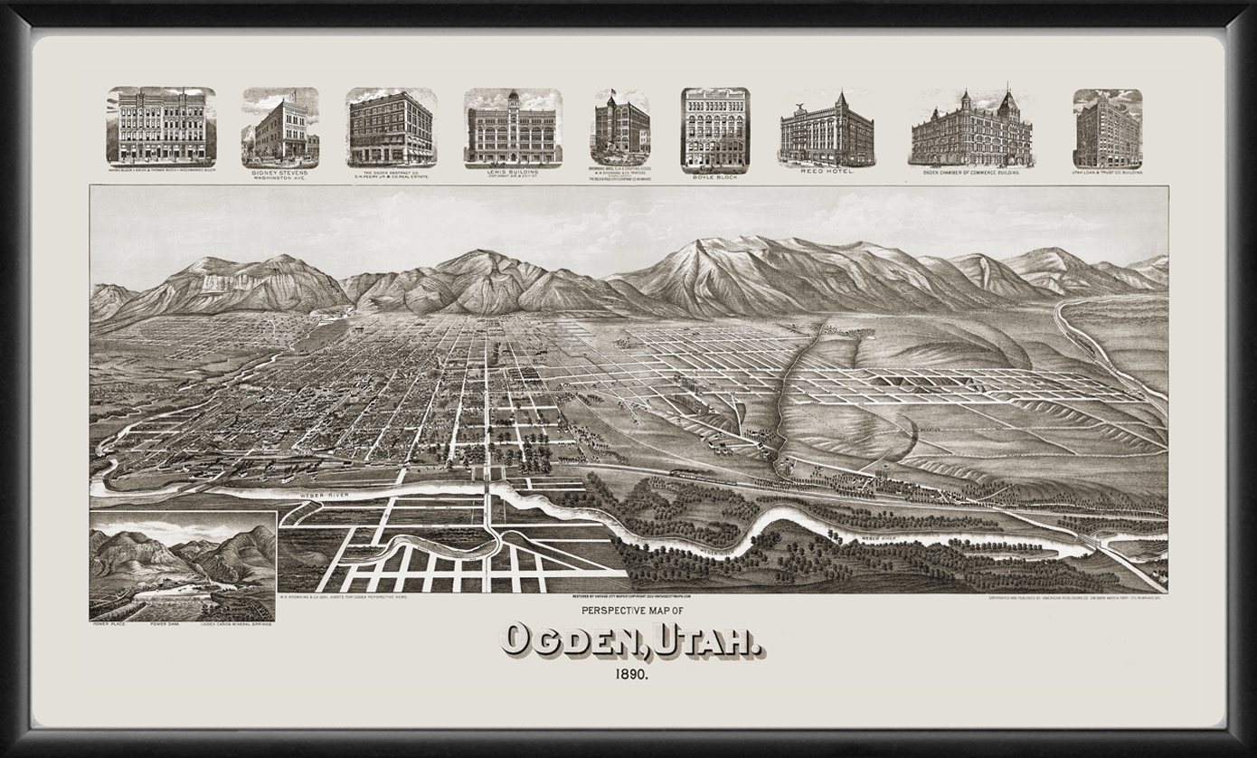 Restored bird’s eye view of Ogden, Utah, 1890 by Henry Wellge. Shop our amazing catalog of restored bird’s eye view maps.