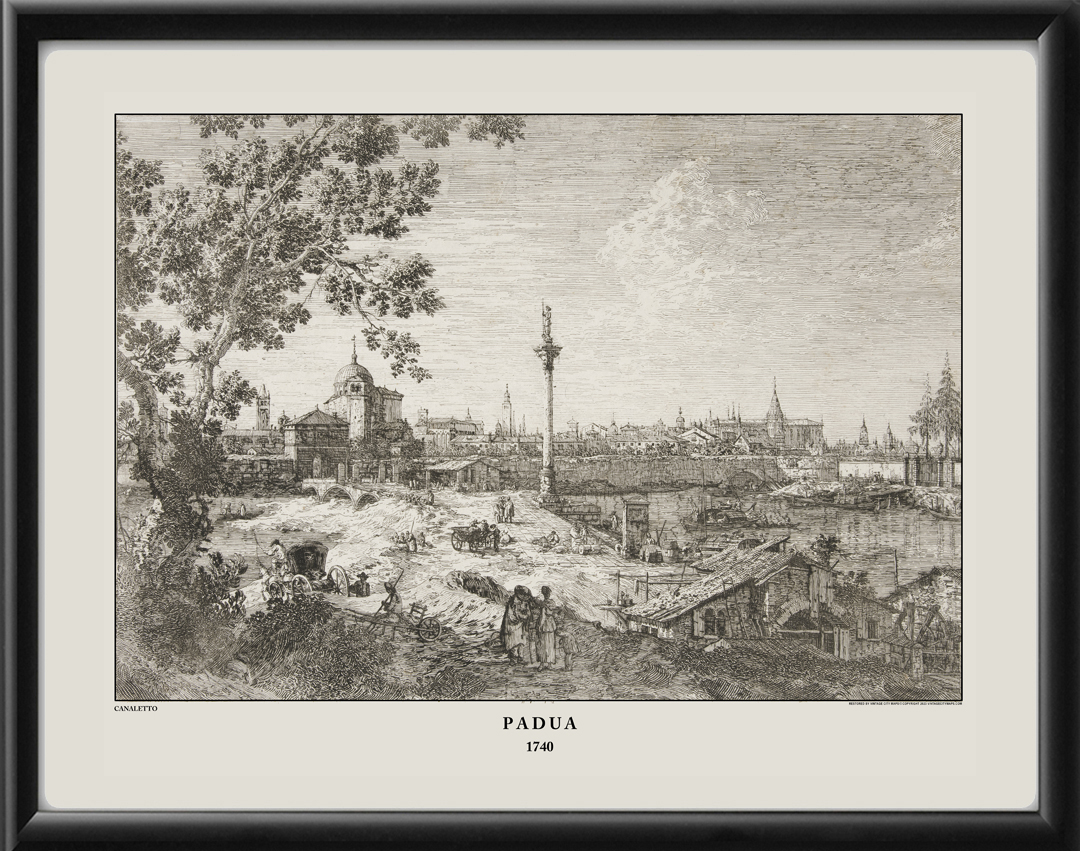 Restored panoramic view of Padua, Italy, 1740 from the original imaginary engraving by Canaletto (Giovanni Antonio Canal)