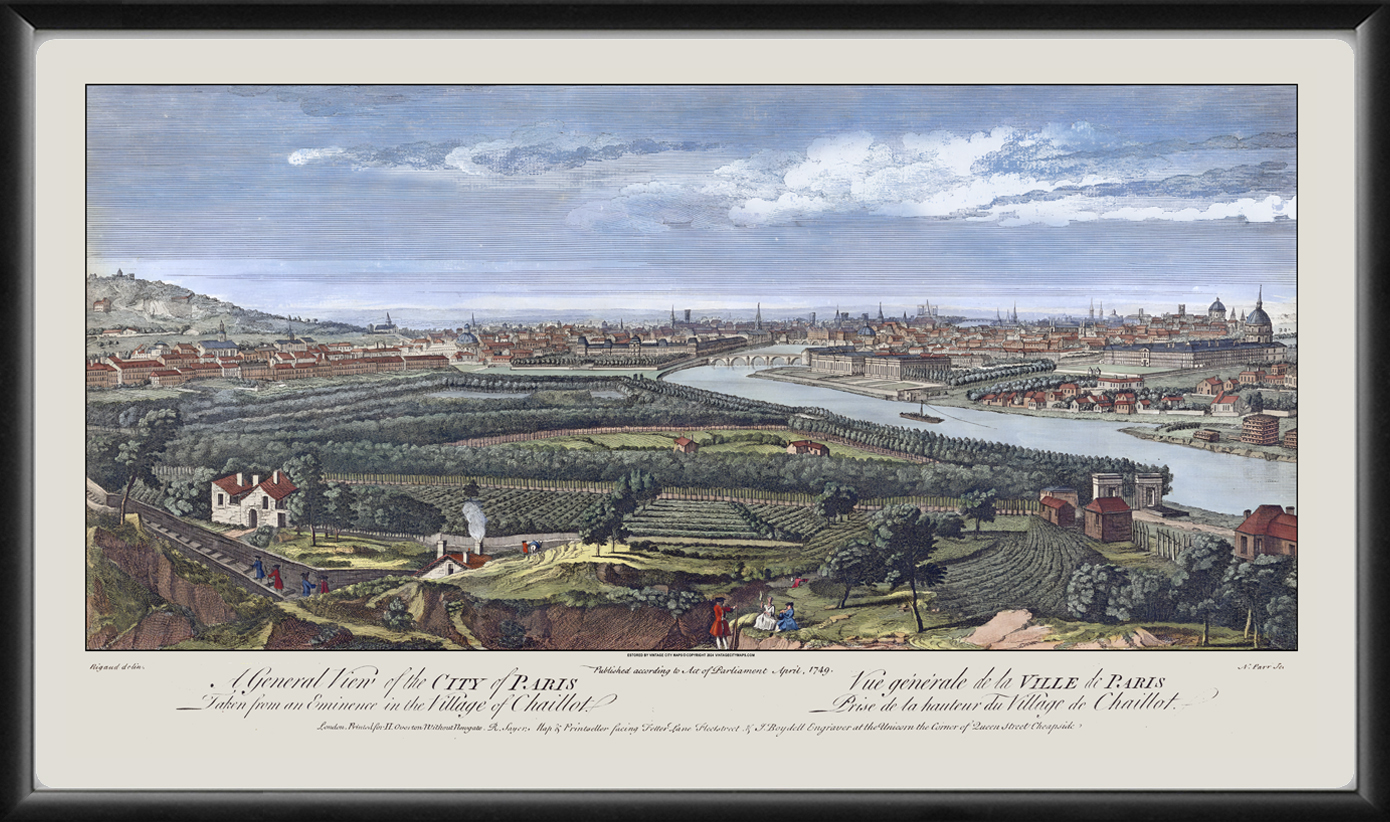 Restored bird’s eye view of the City of Paris taken from an Eminence in the Village of Chaillot, 1749, drawn by Jacques Rigaud and engraved by Nathaniel Parr