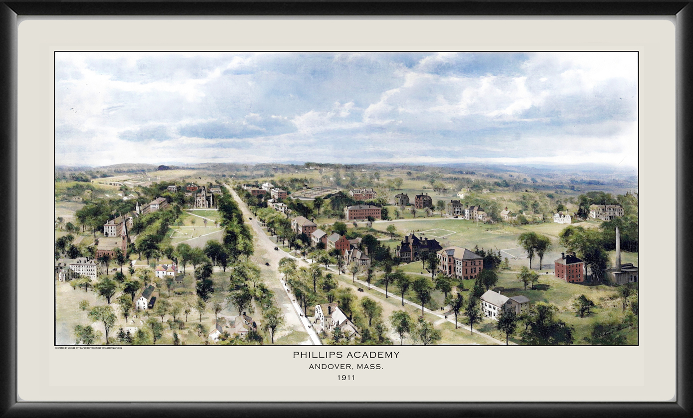 Restored bird’s eye view of Phillips Academy in Andover, Massachusetts, 1911 by Richard Rummell
