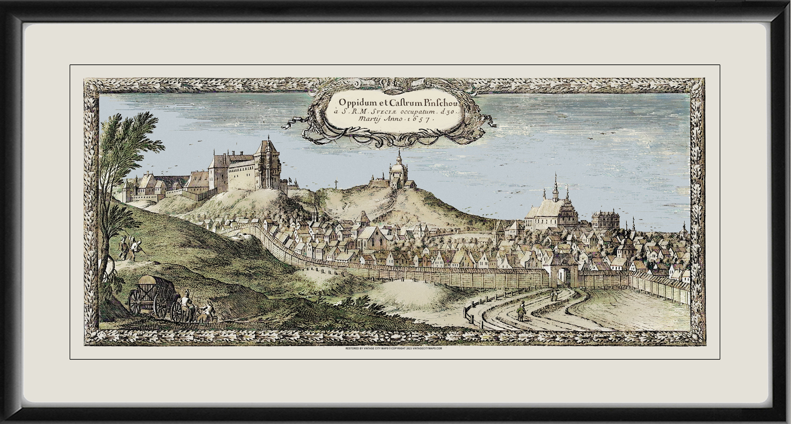 Restored panoramic view of Pinczow (Pinchov), Poland, 1657 by Eryk Dahlberg