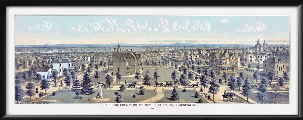 Restored bird’s eye view map of Portland, Oregon, 1888 by C.L. Smith.