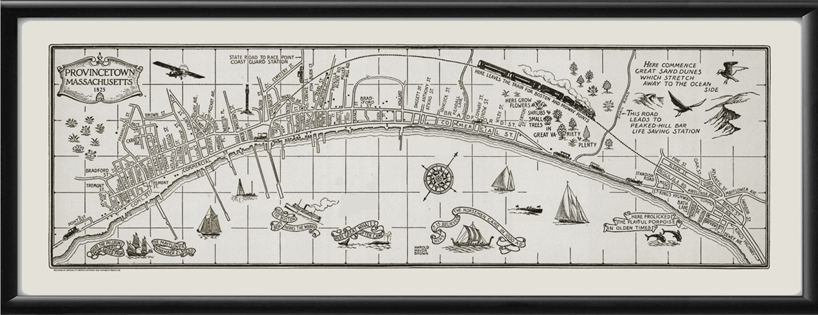 Restored antique map of Provincetown, Cape Cod, Massachusetts, 1825 by Harold Haven Brown