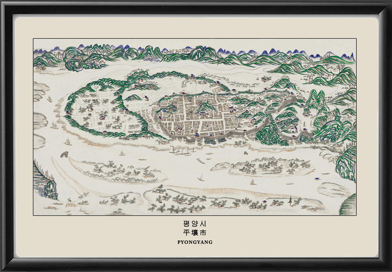 Restored bird’s eye view of Pyongyang, North Korea, 1800’s. Artist unknown.
