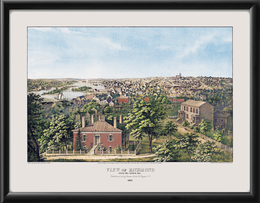 Restored and colored bird’s eye view of Richmond, Virginia, 1851 by Edward Sachse.